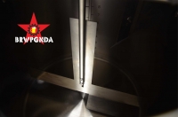 - Das Störblech ist ebenfalls gebogen um den Effekt zu verstärken. Es ist ebenfalls höhenverstellbar, somit kann es immer knapp über den Rührflügel eingestellt werden. Dies ist förderlich bei der Durchmischung bei der niedrigsten Sudgröße des jeweiligen Kessels.